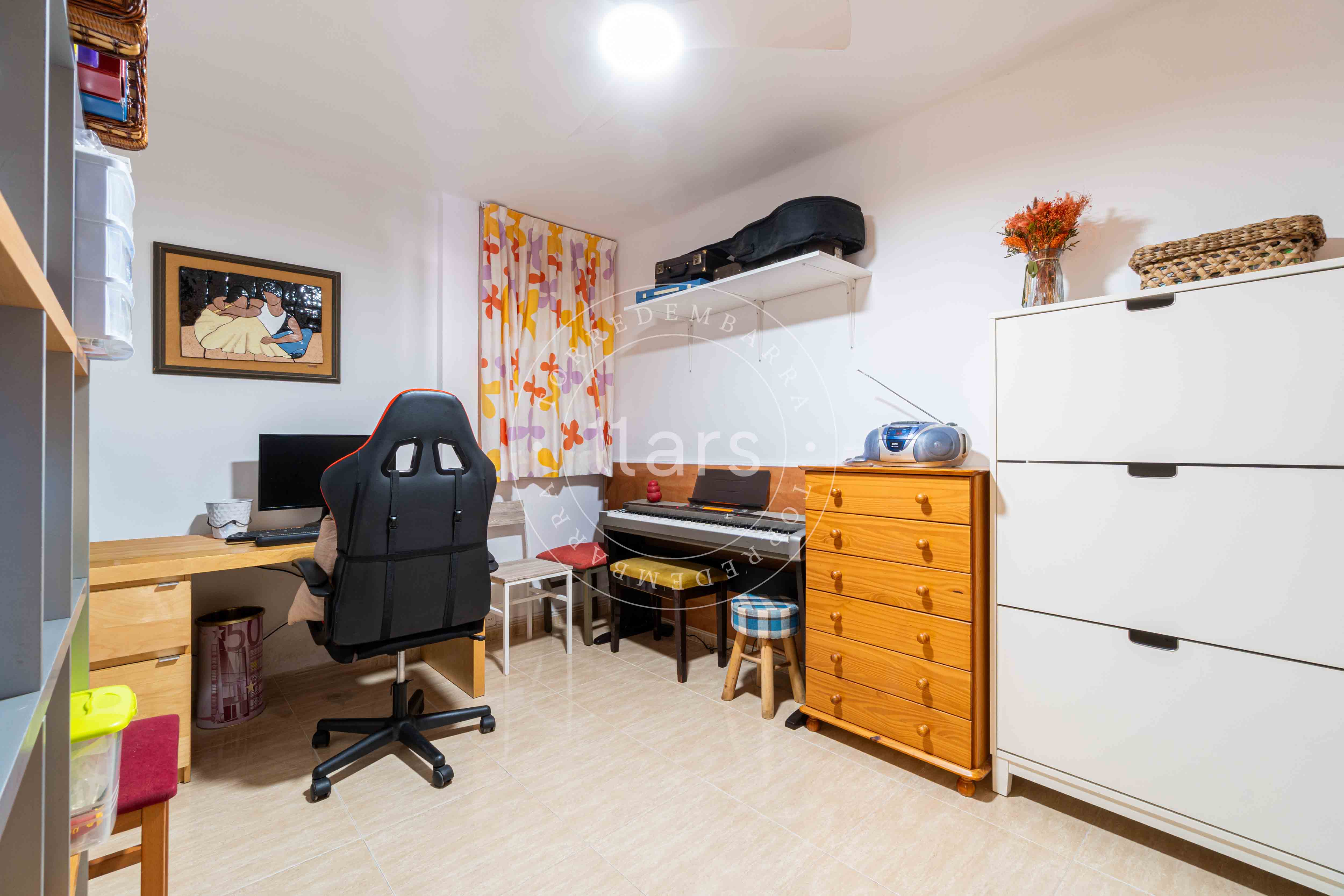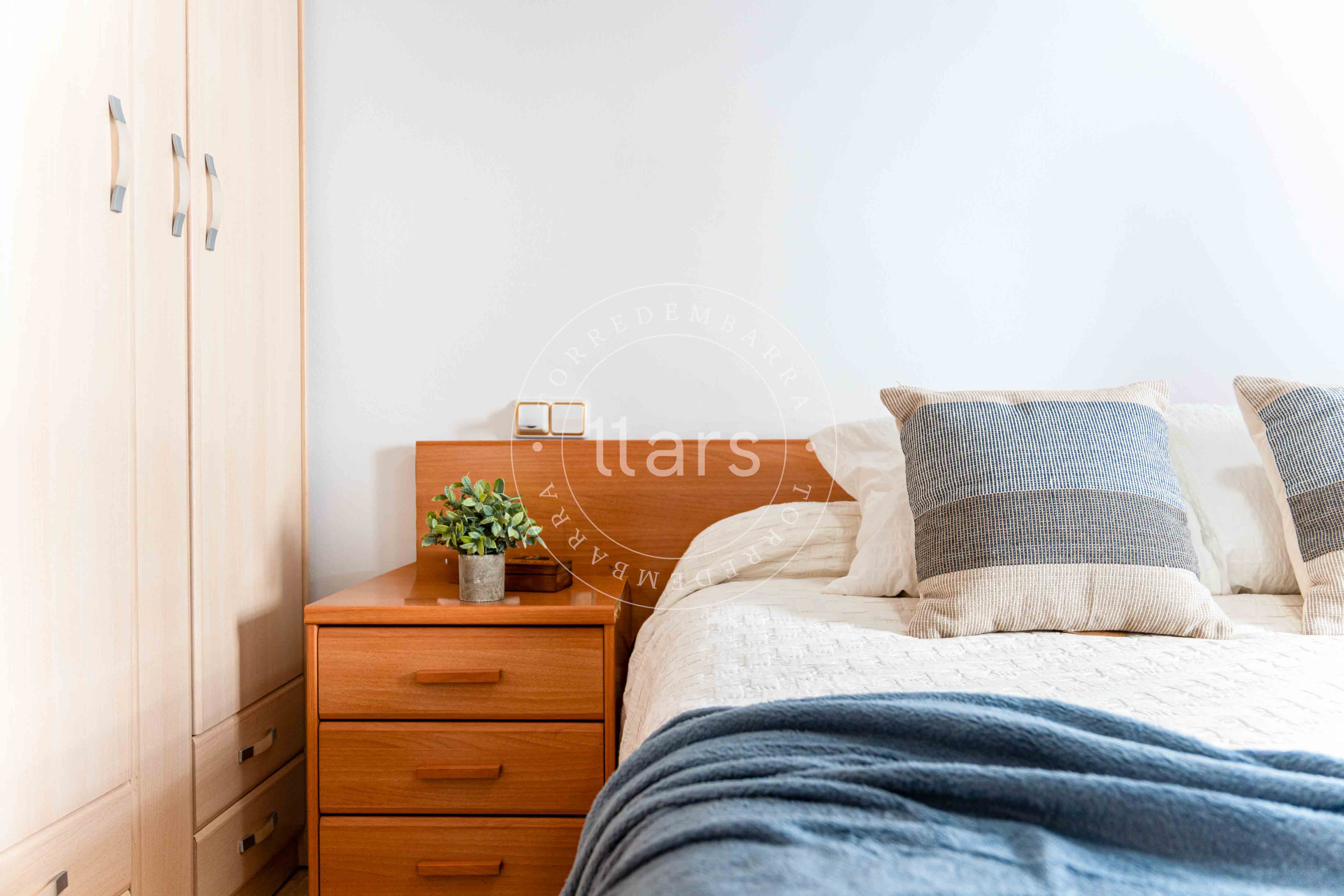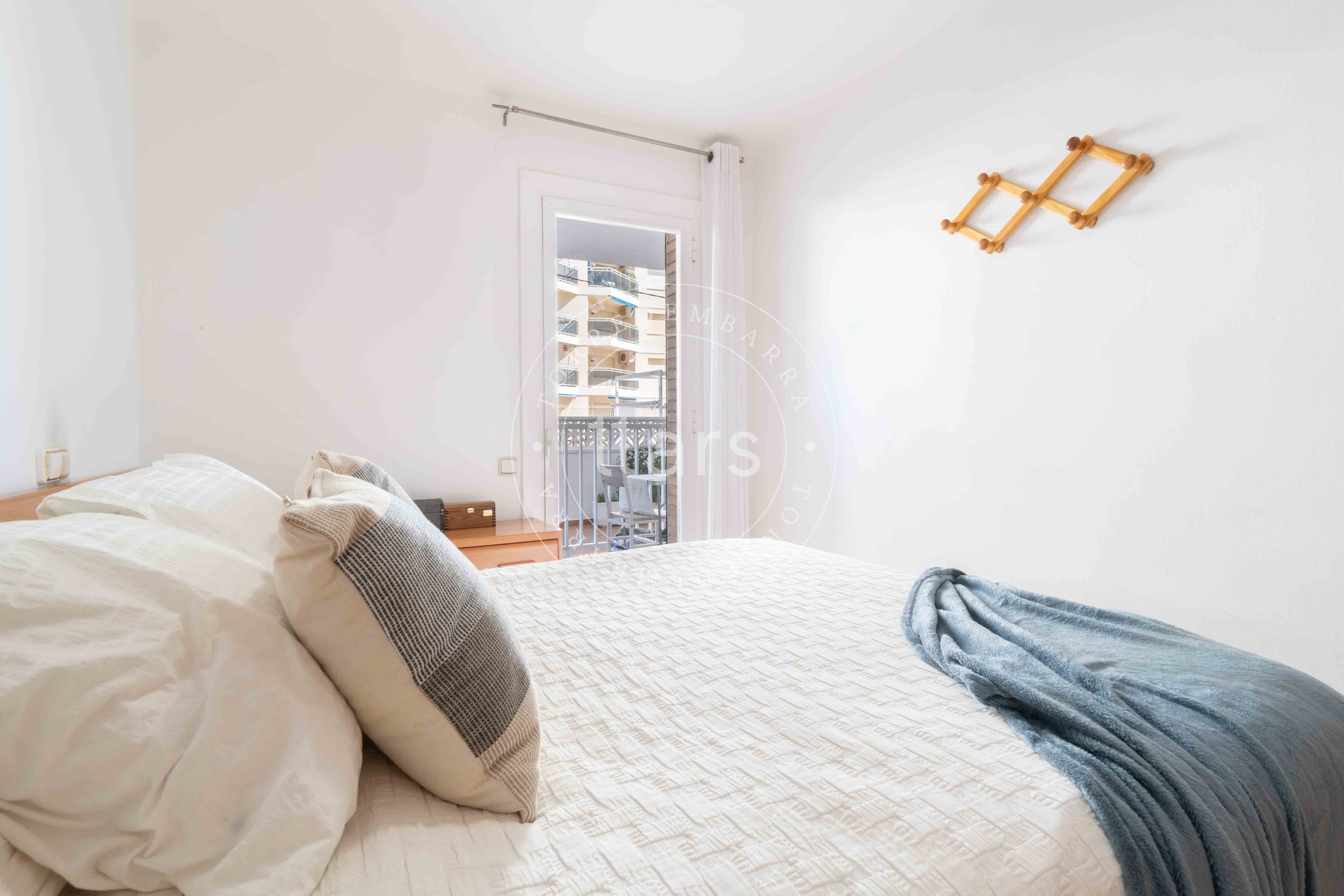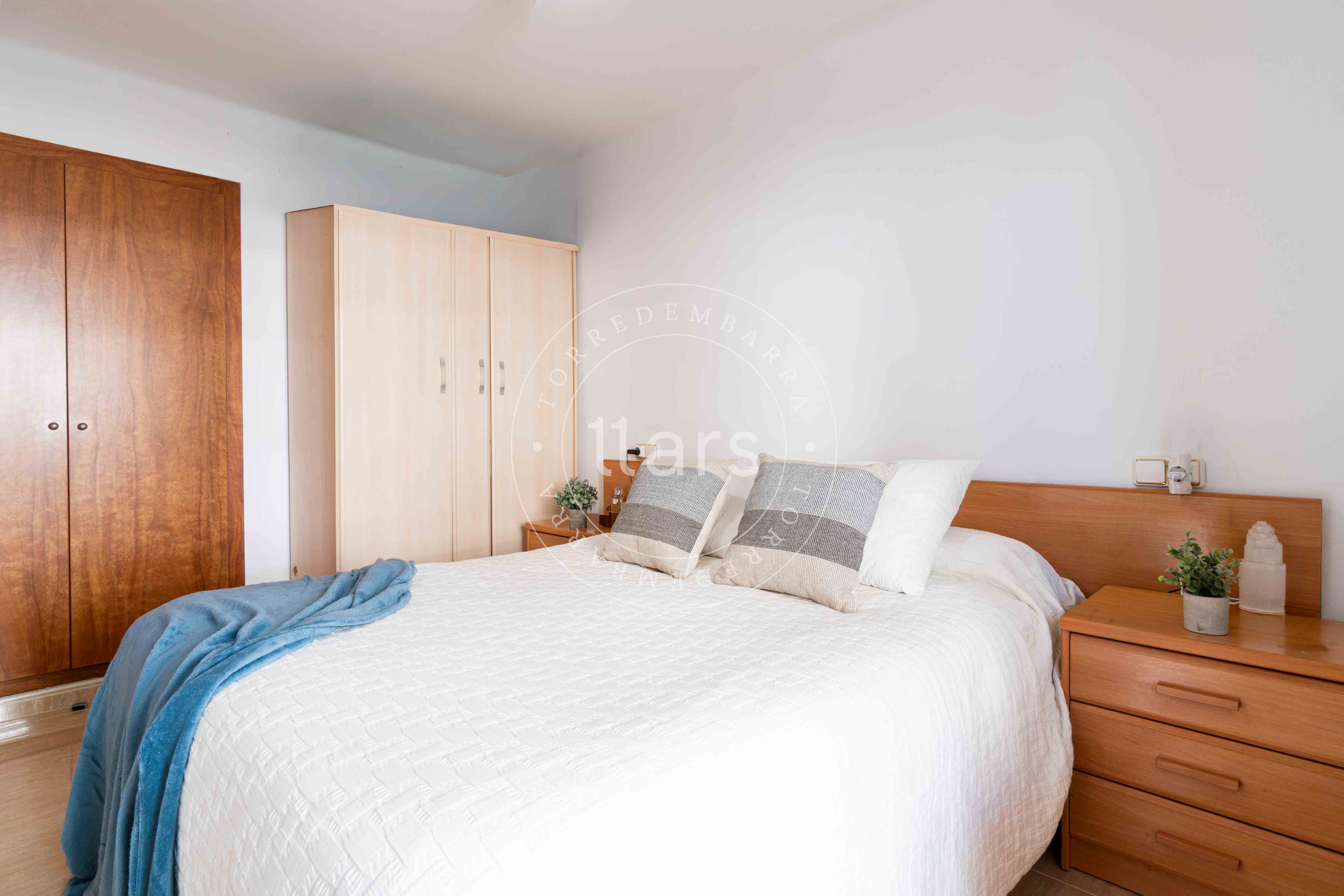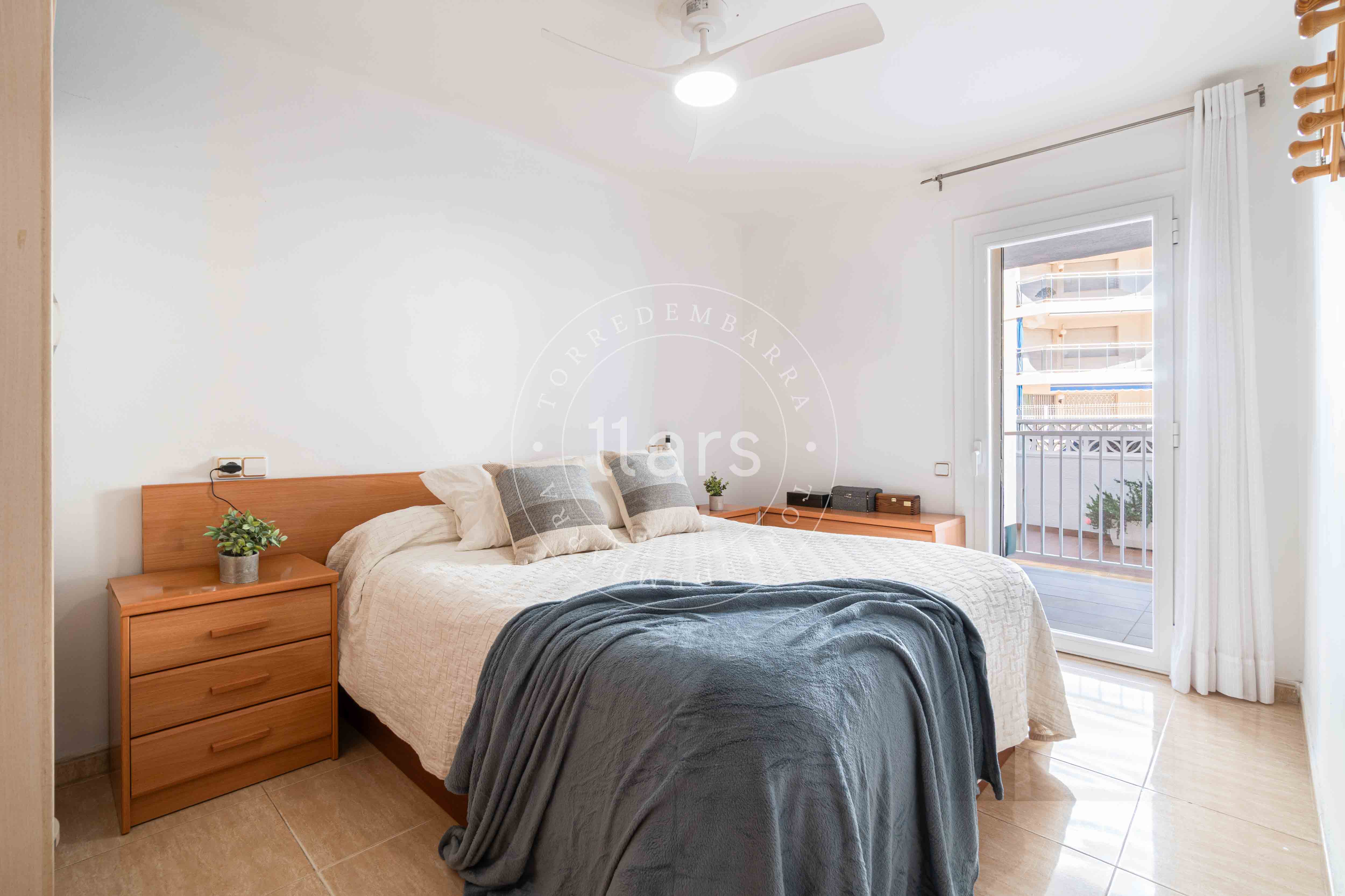 Desde el salón accedemos también a la habitación principal, una habitación doble con armario empotrado y salida directa a la terraza, lo que aporta una agradable sensación de amplitud y conexión con el exterior.